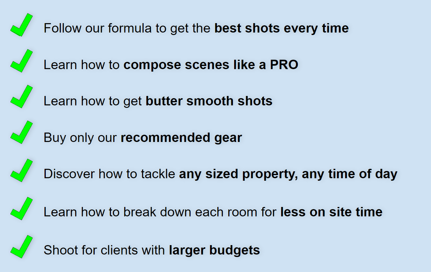 "Wow. Just wow. One of the best courses for real estate video production I've ever taken. This is next-level stuff."